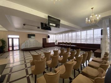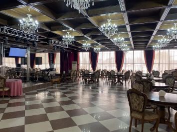 Оборудование: сцена, мягкая мебель, столы, микшер, микрофон, три телевизионные панели, есть программа для караоке.